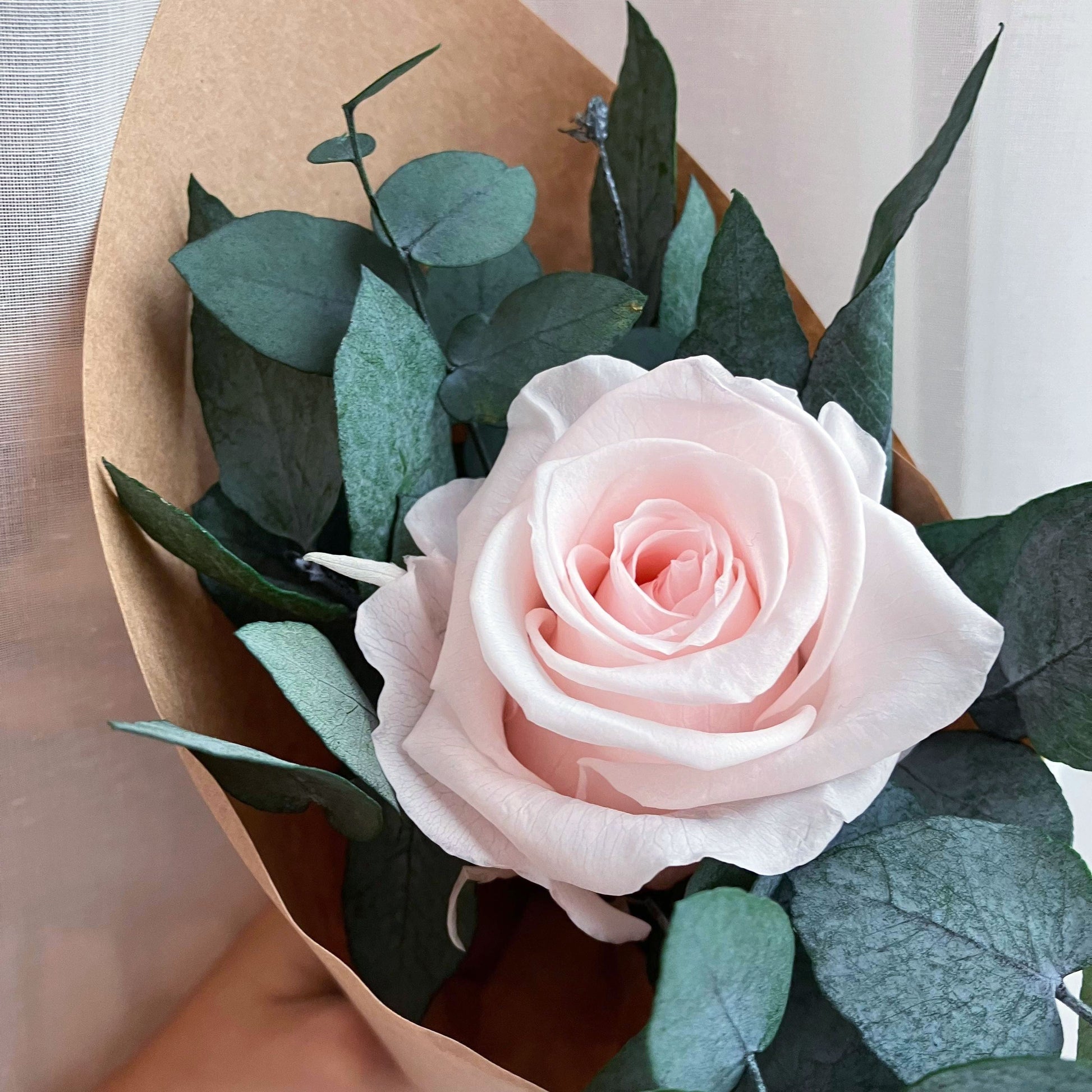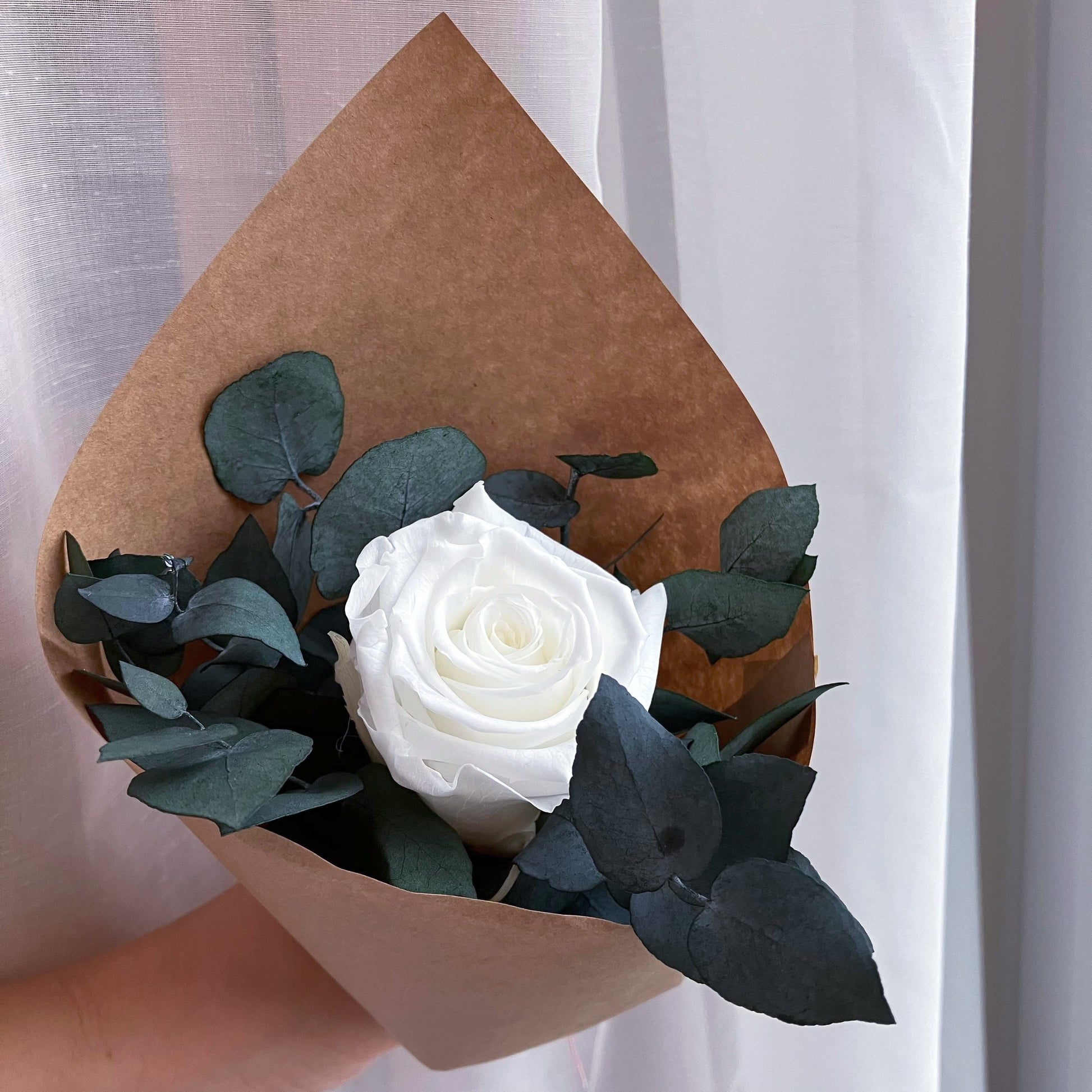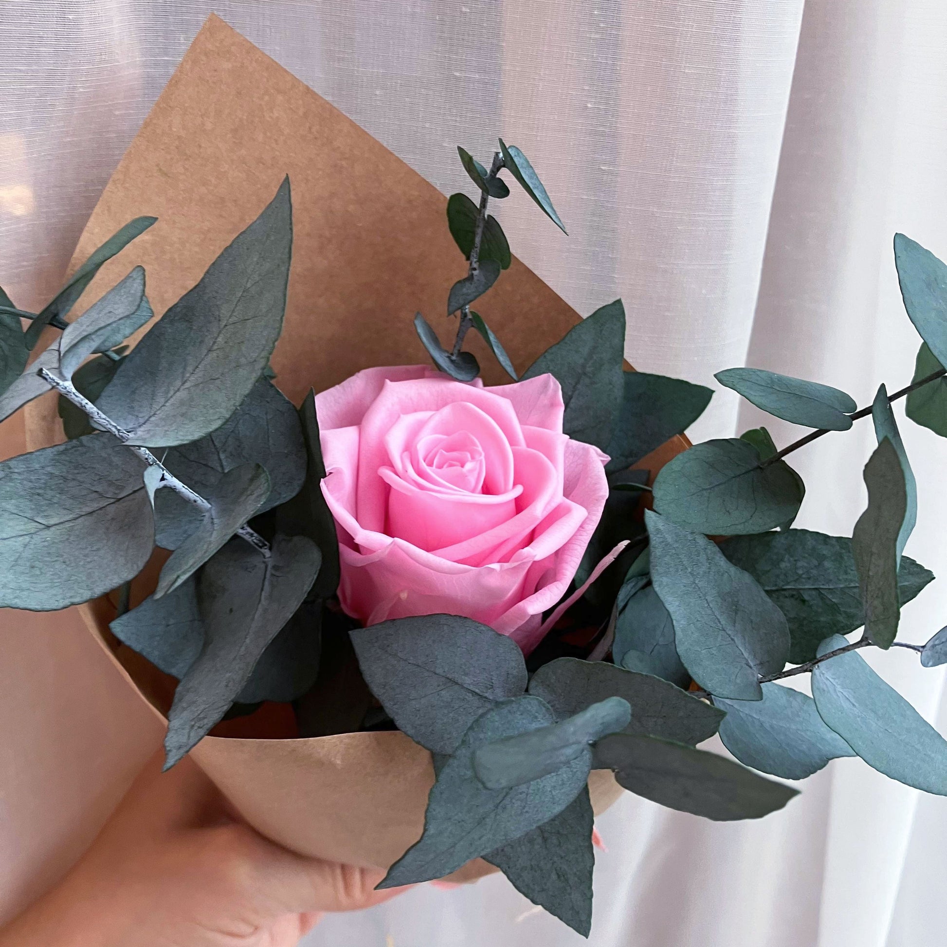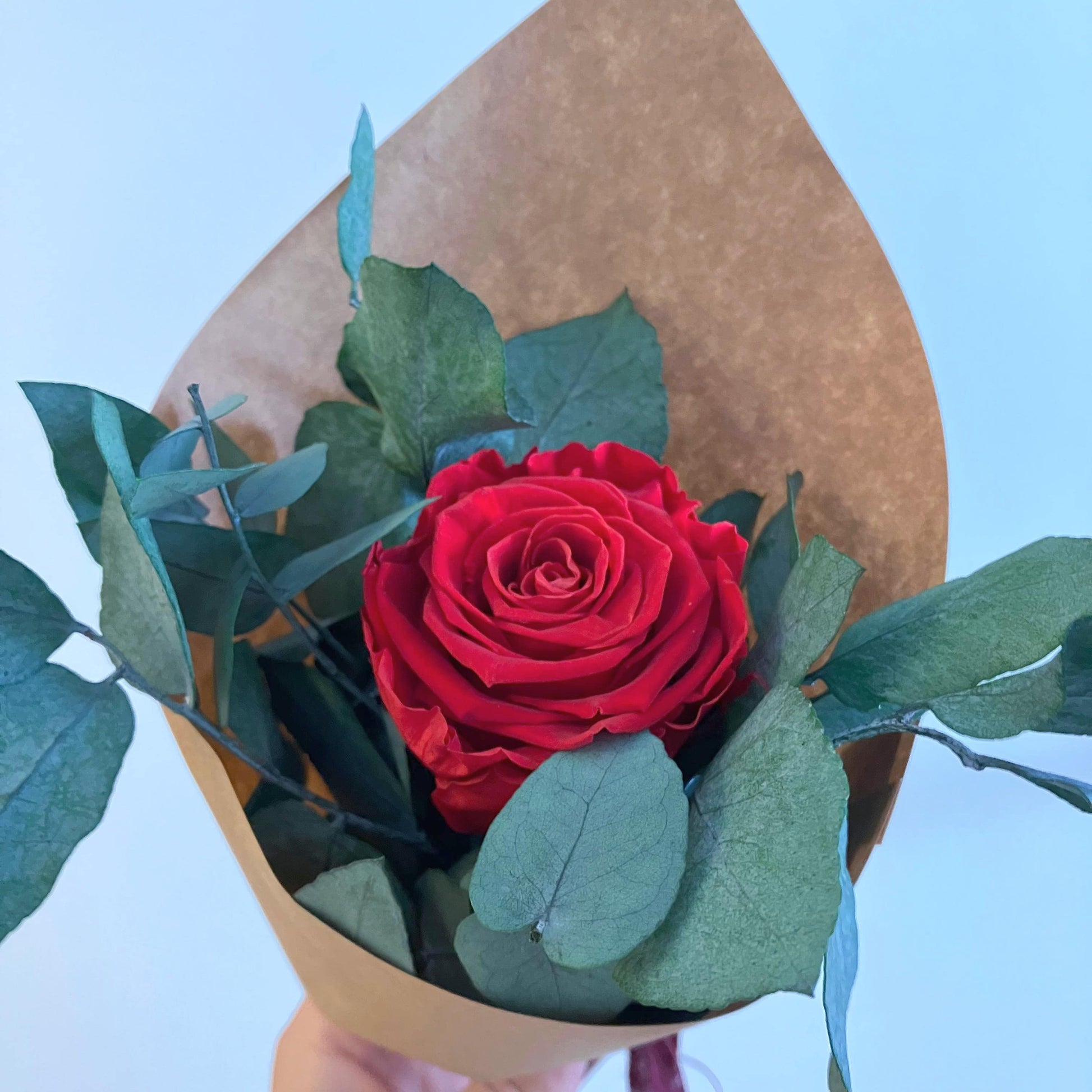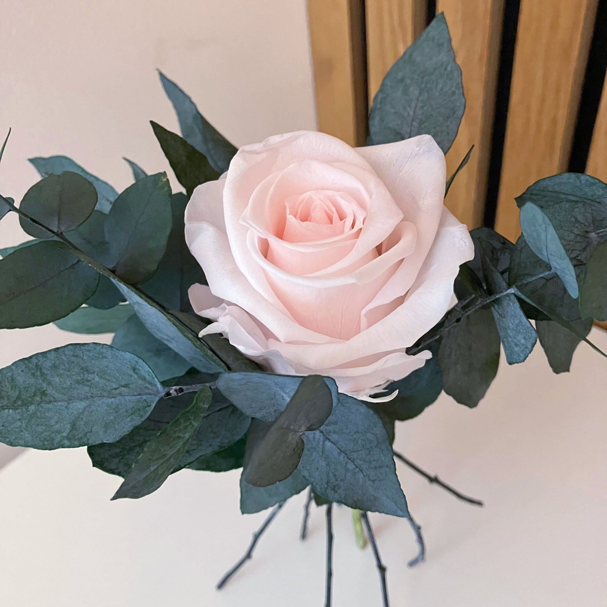 Tato minikytice je klasickou kombinací růží a eukalyptu. Je jemnou a přitom nepřehlédnutelnou dekorací každého interiéru. Stabilizované růže v kombinaci s eukalyptem vytvářejí harmonii elegance a přirozenosti. Hodí se do moderního i rustikálního interiéru – jako doplněk do ložnice, na poličku nebo dárek.